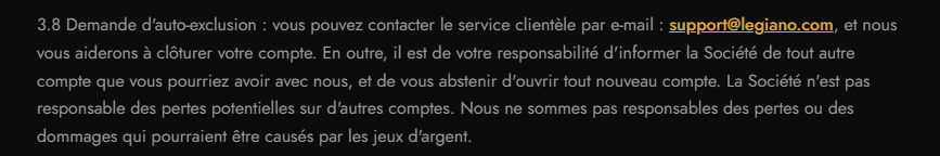 Pour bien commencer la journée, j’ai regardé le règlement. Je ne trouve pas le passage qui dit que la demande doit prendre effet dans les 24 heures, et encore moins celui qui dit qu’ils doivent te rembourser tous les dépôts que tu aurais réussis à faire entre ta demande d’auto-exclusion et la fermeture effective de ton compte.