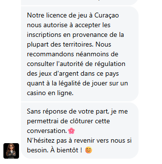 “Notre licence de jeu à Curaçao nous autorise à accepter les inscriptions en provenance de la plupart des territoires. Nous recommandons néanmoins de consulter l’autorité de régulation des jeux d’argent de ces pays quant à la légalité de jouer sur un casino en ligne.